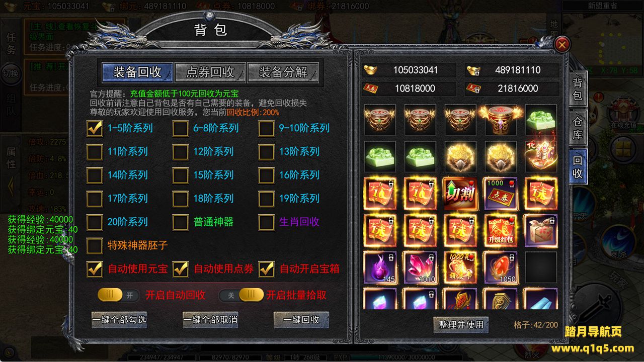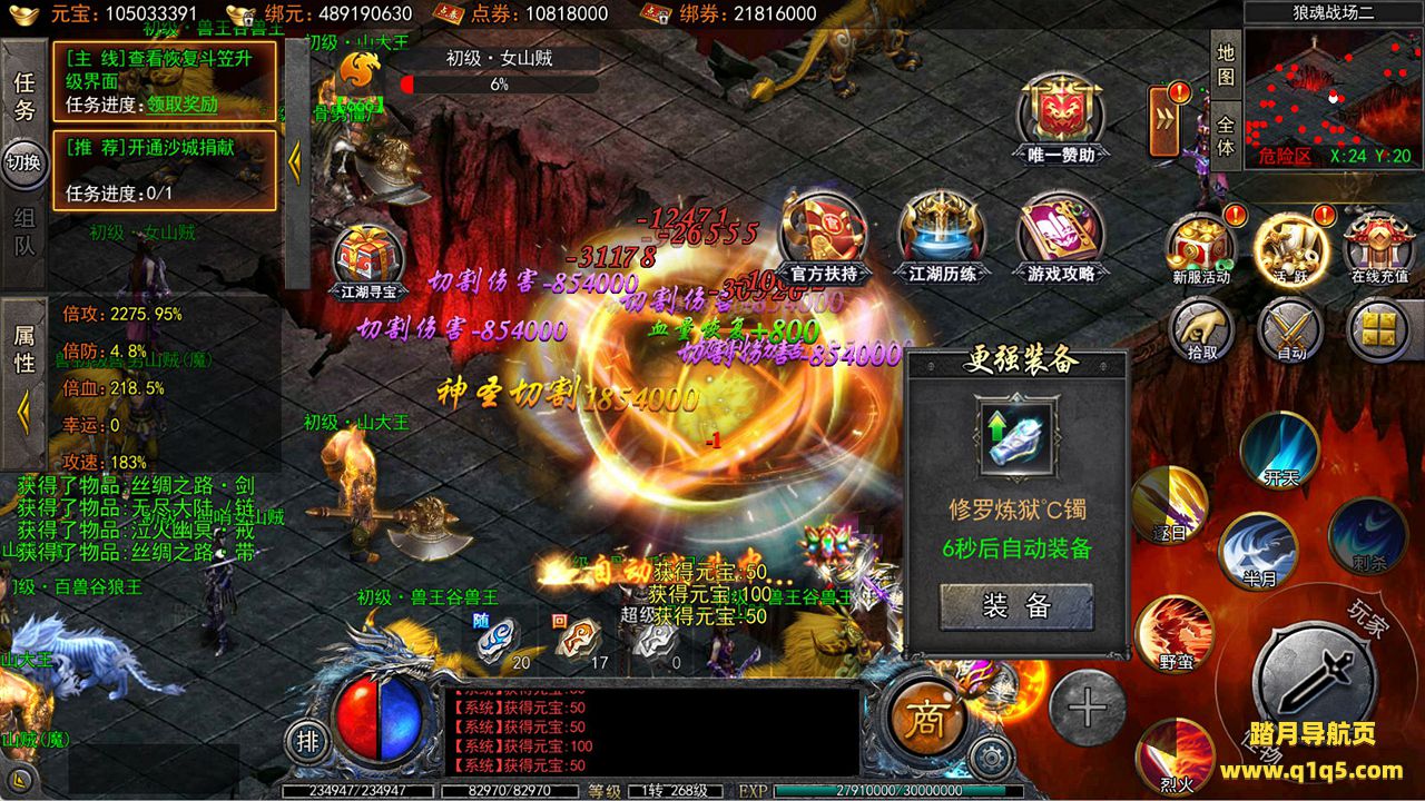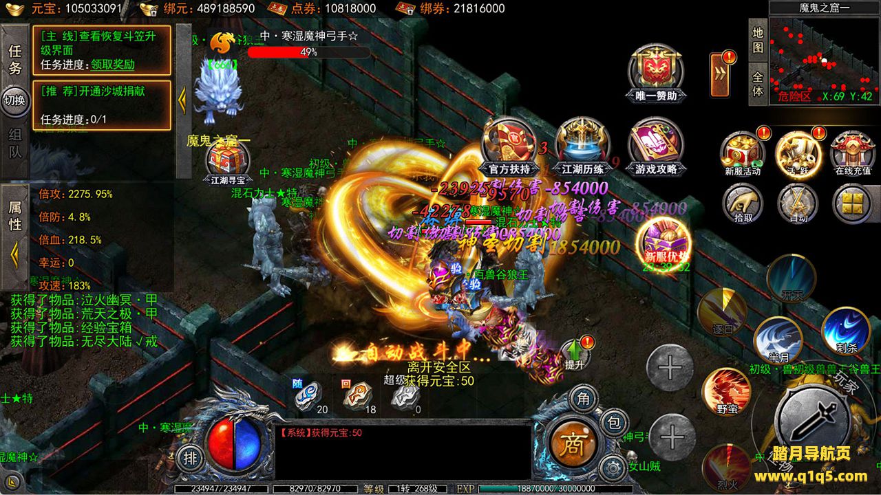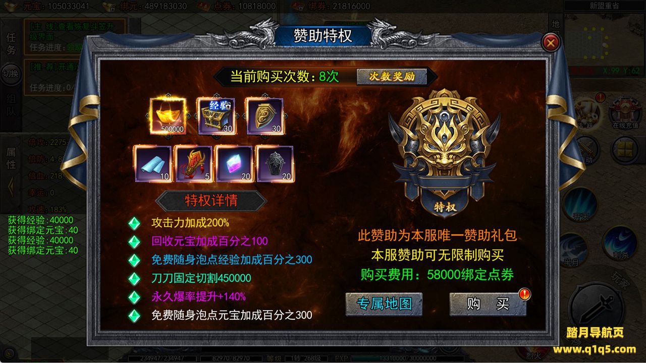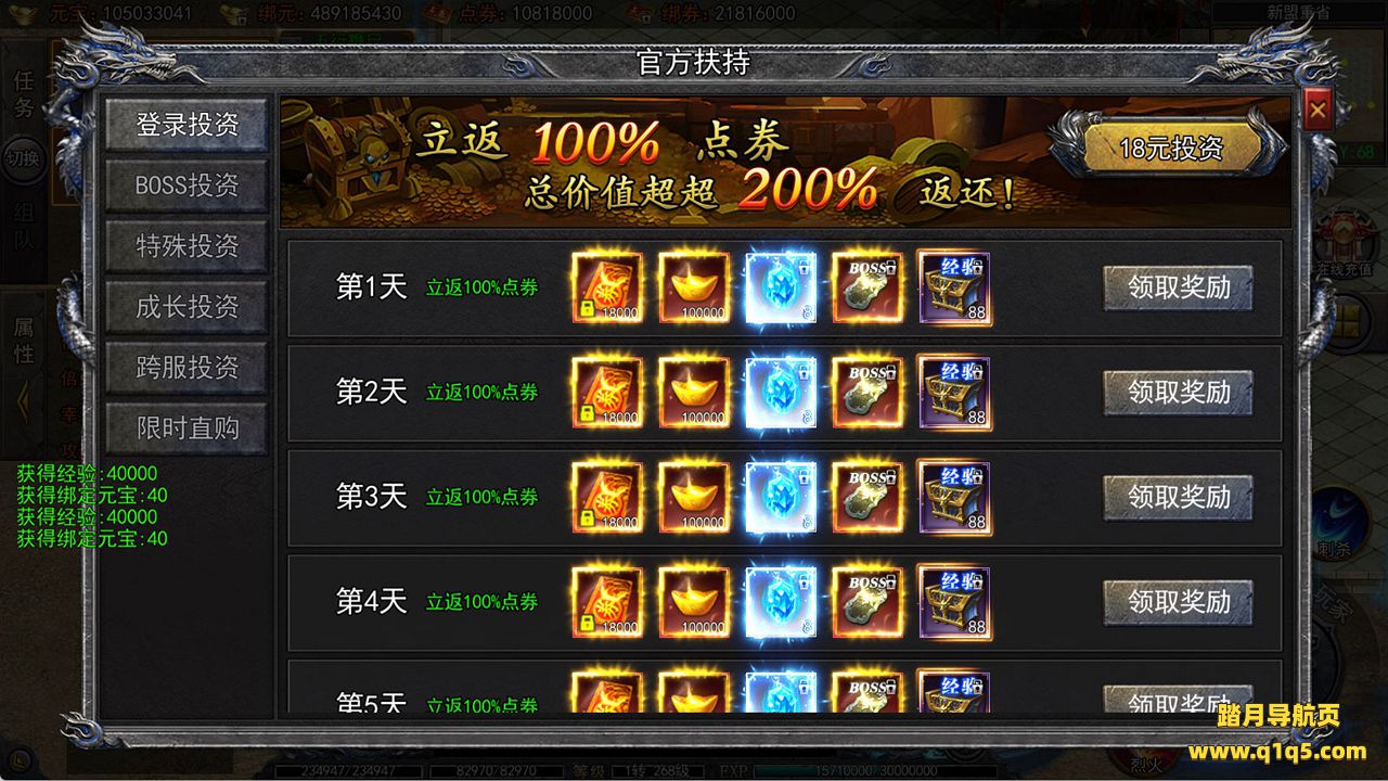 下面我们来测试下游戏里的功能看看吧。好了,其他功能就自行测试吧。更多的游戏资源可以访问www.q1q5.com下载,我们每款游戏资源均单独制作了独立的视频架设教程,让小白也可以快速上手游戏架设,快来体验自己做GM的乐趣吧!