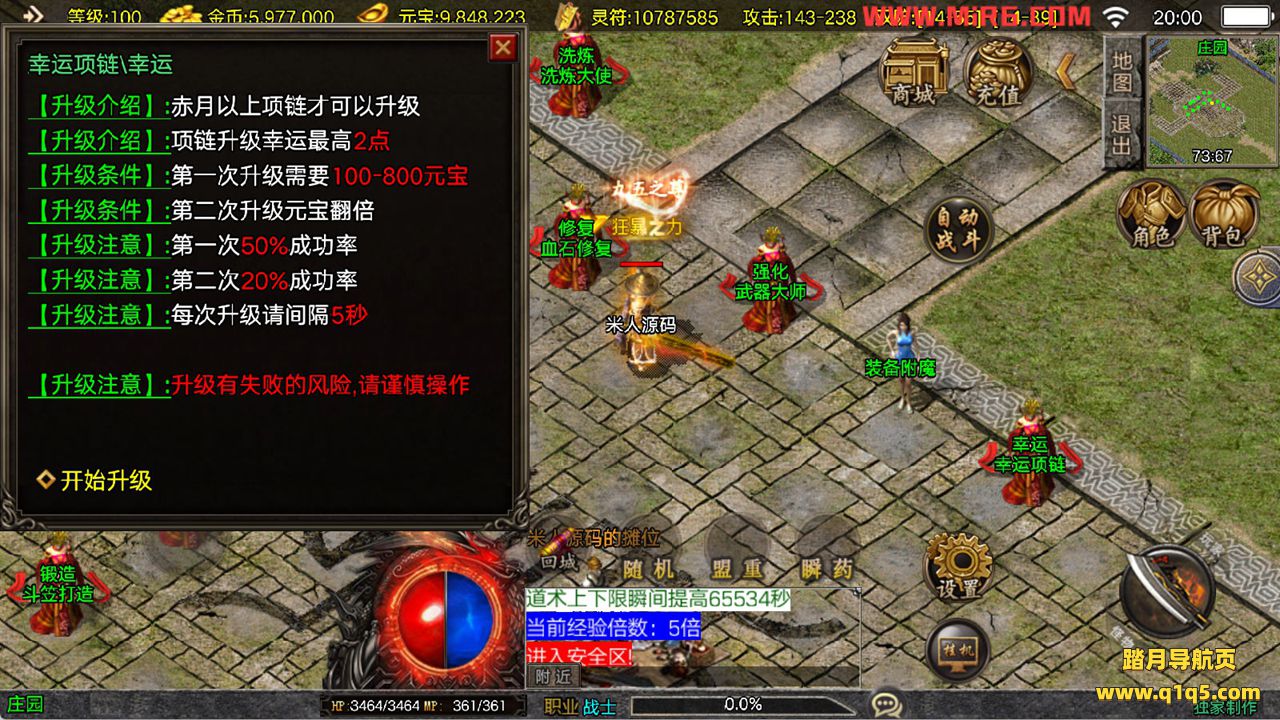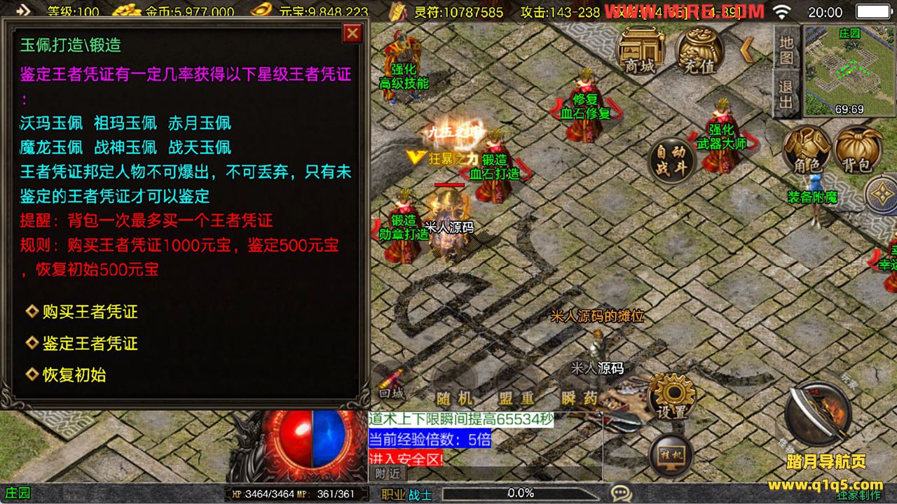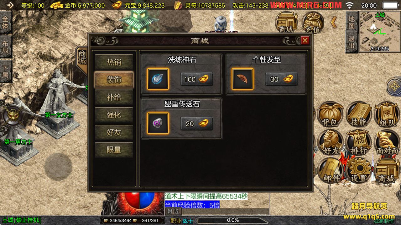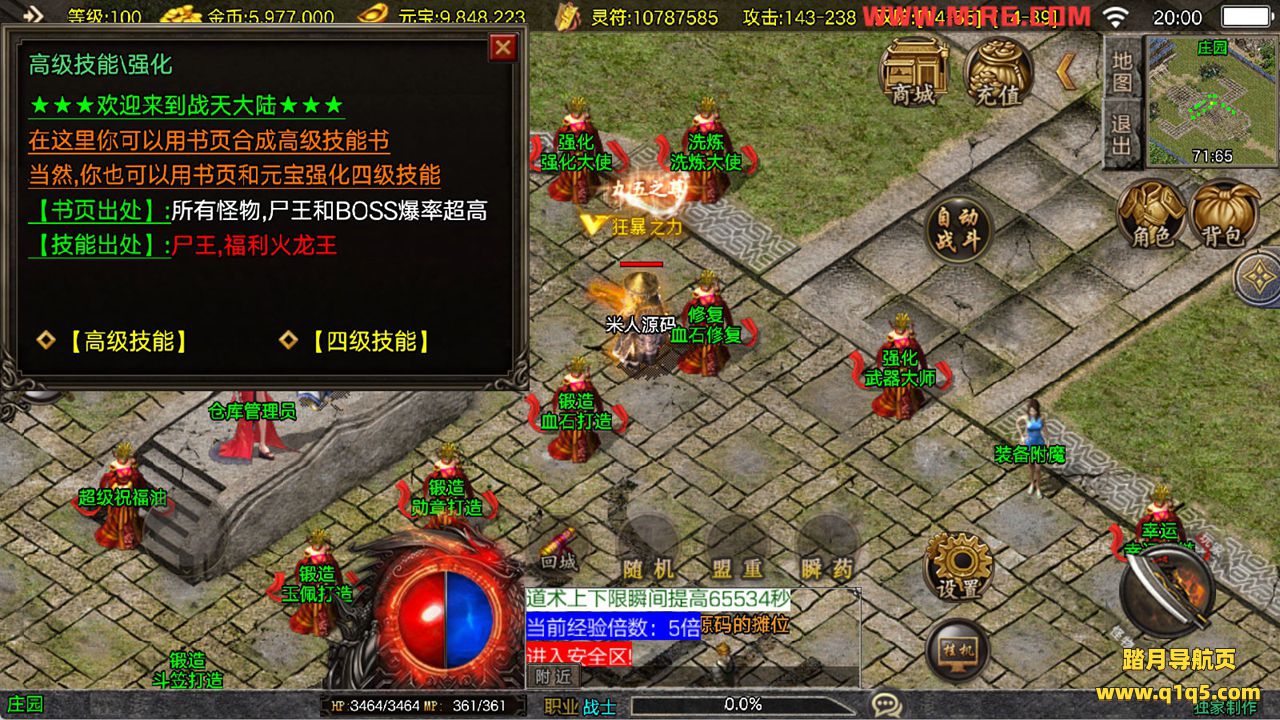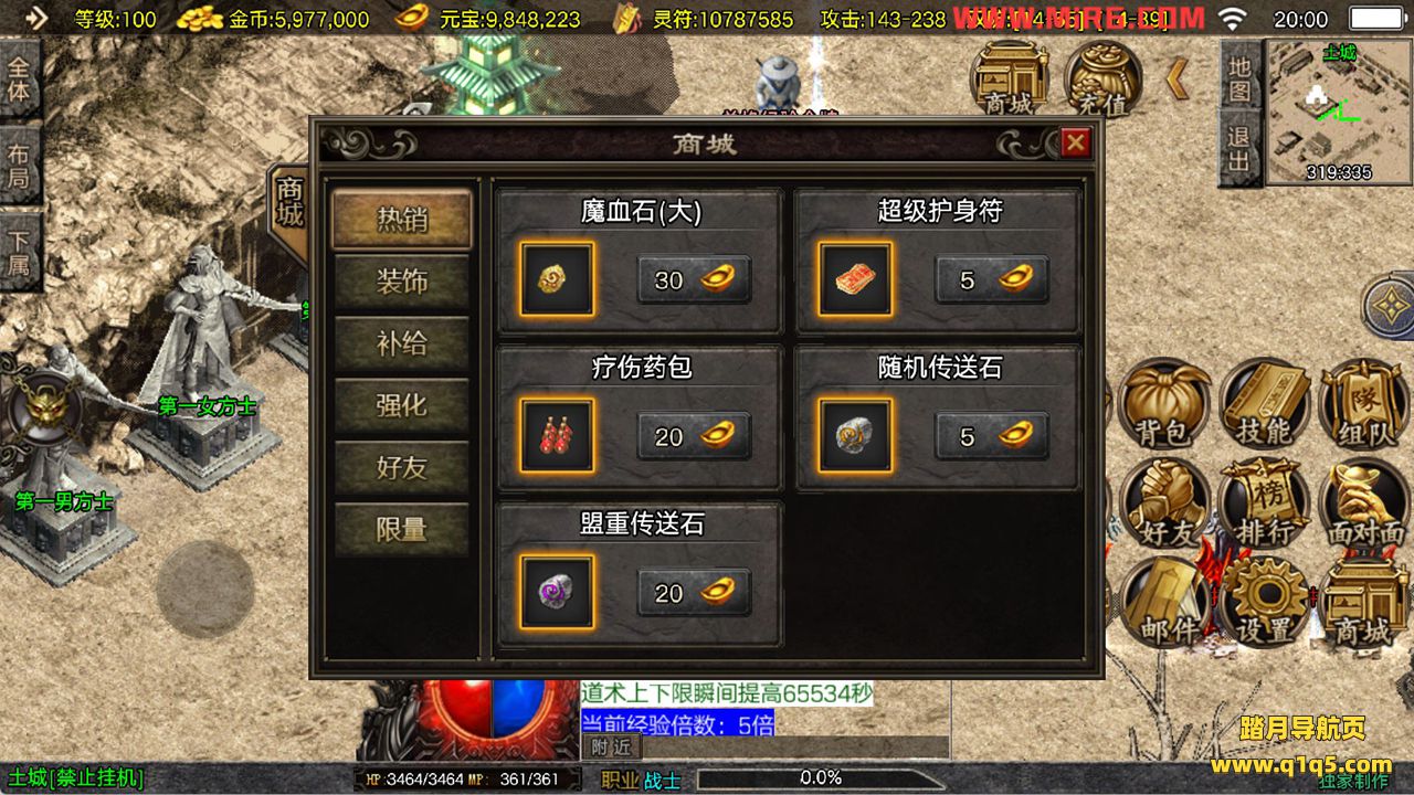 下面我们来测试下游戏里的功能看看。好了,其他功能就自行测试吧。更多的游戏资源可以访问www.q1q5.com下载,我们每款游戏资源均单独制作了独立的视频架设教程,让小白也可以快速上手游戏架设,快来体验自己做GM的乐趣吧!