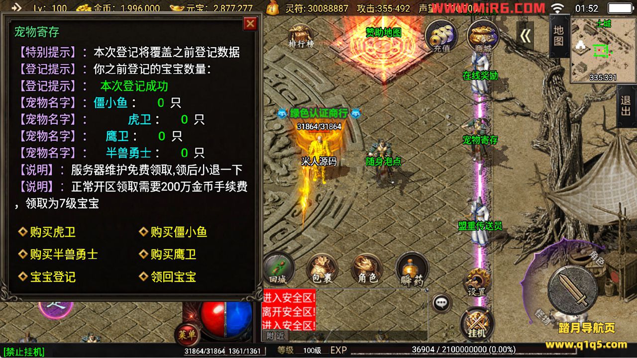 下面我们开始测试下游戏里的功能看看。好了,其他功能就自行测试吧。更多的游戏资源可以访问www.q1q5.com下载,我们每款游戏资源均单独制作了独立的视频架设教程,让小白也可以快速上手游戏架设,快来体验自己做GM的乐趣吧!