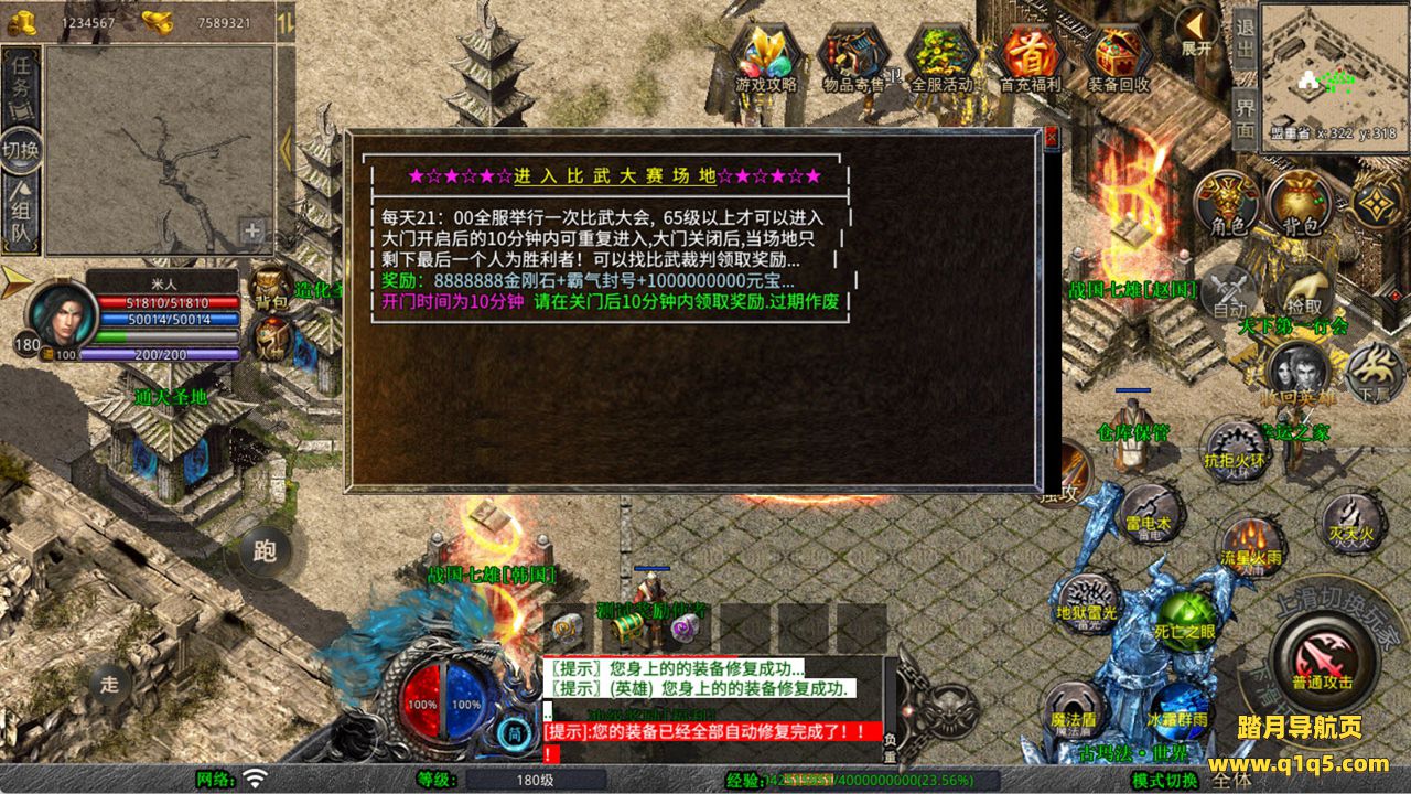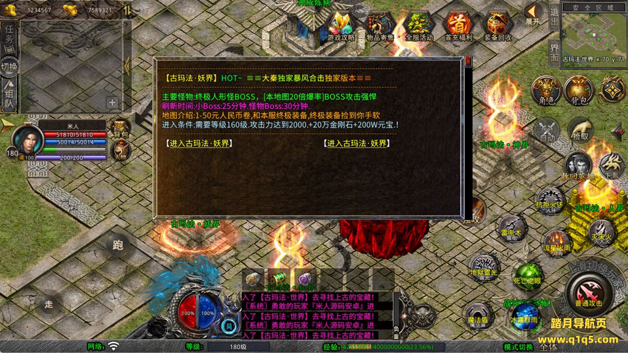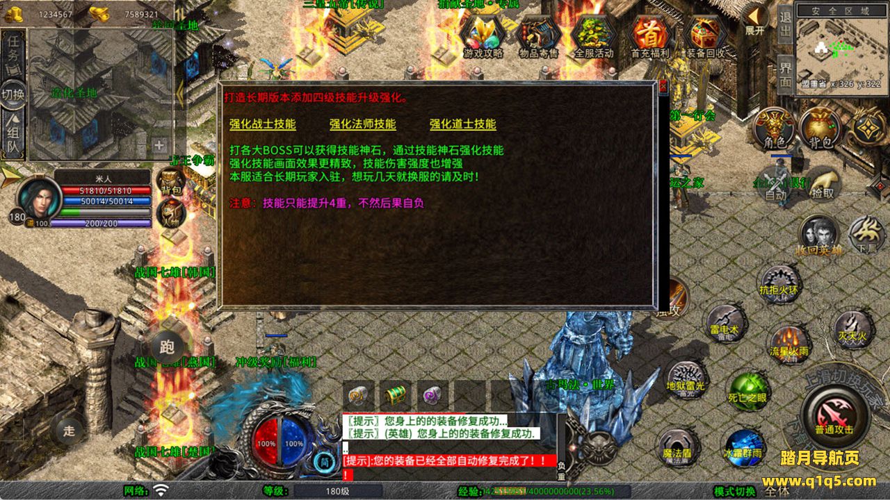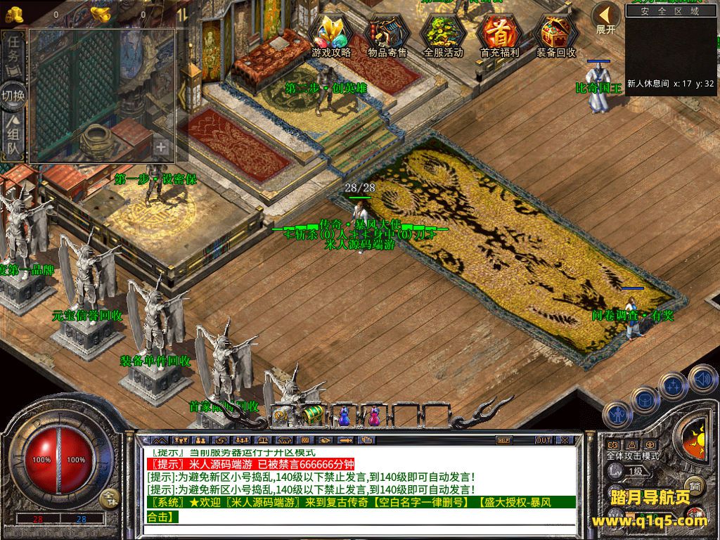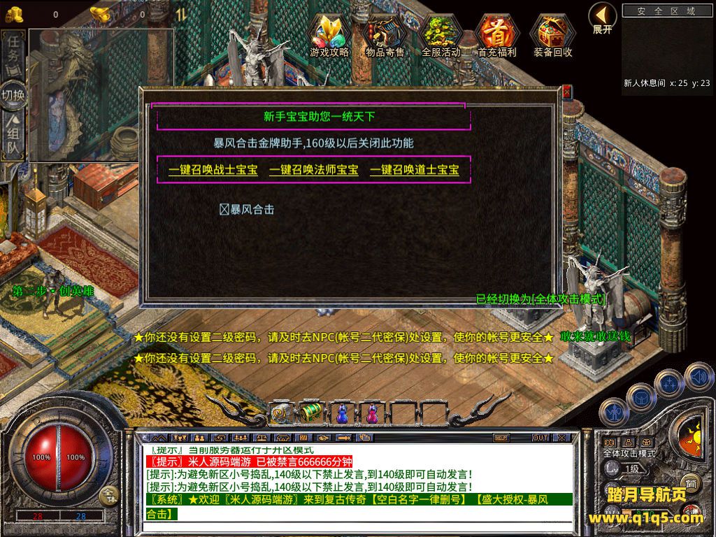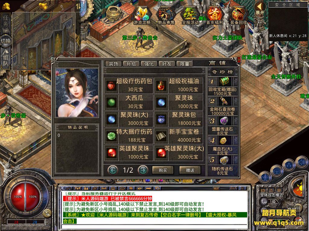 下面我们去测试下游戏里的功能看看。好了,其他功能就自行测试吧。更多的游戏资源可以访问www.q1q5.com下载,我们每款游戏资源均单独制作了独立的视频架设教程,让小白也可以快速上手游戏架设,快来体验自己做GM的乐趣吧!